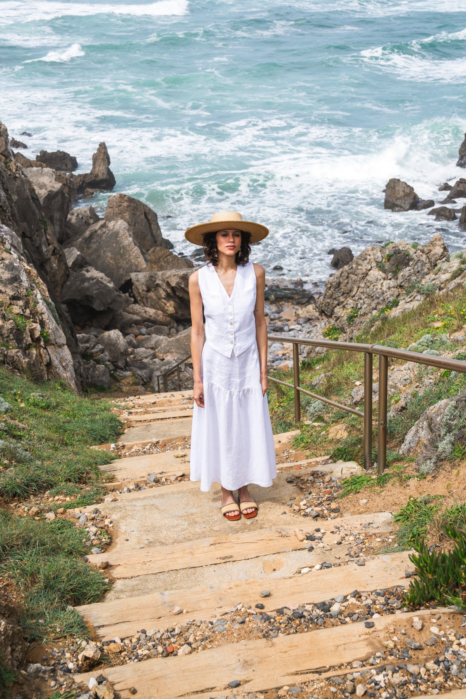 We love skirts in the Summer, and specially when they can take you from office, to drinks, sightseeing a city, holidays. The list to style this skirt is endless. Crafted in 100% linen, with a long length, has movement all around but still is fitted around your hips.