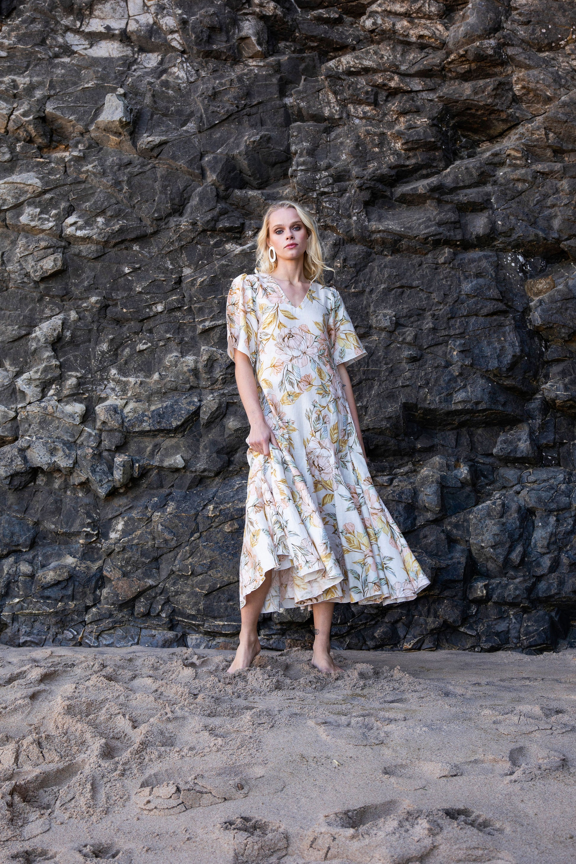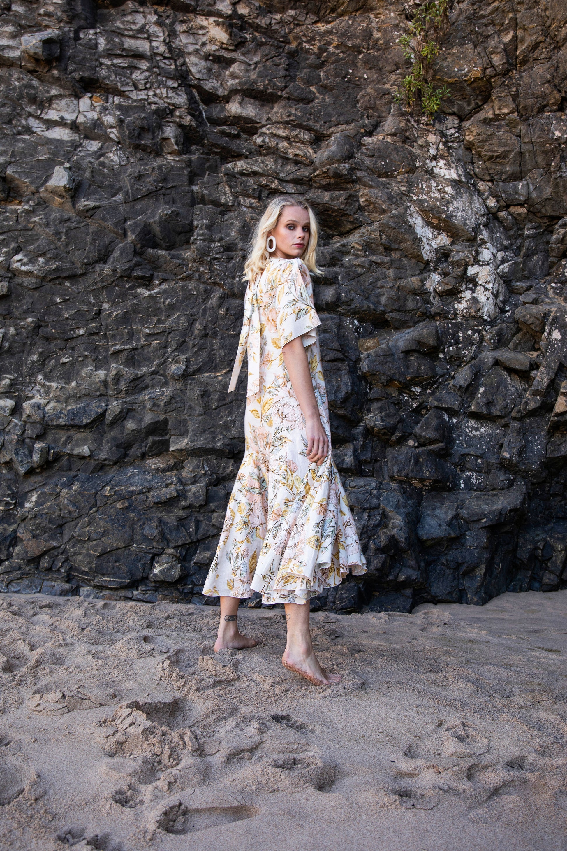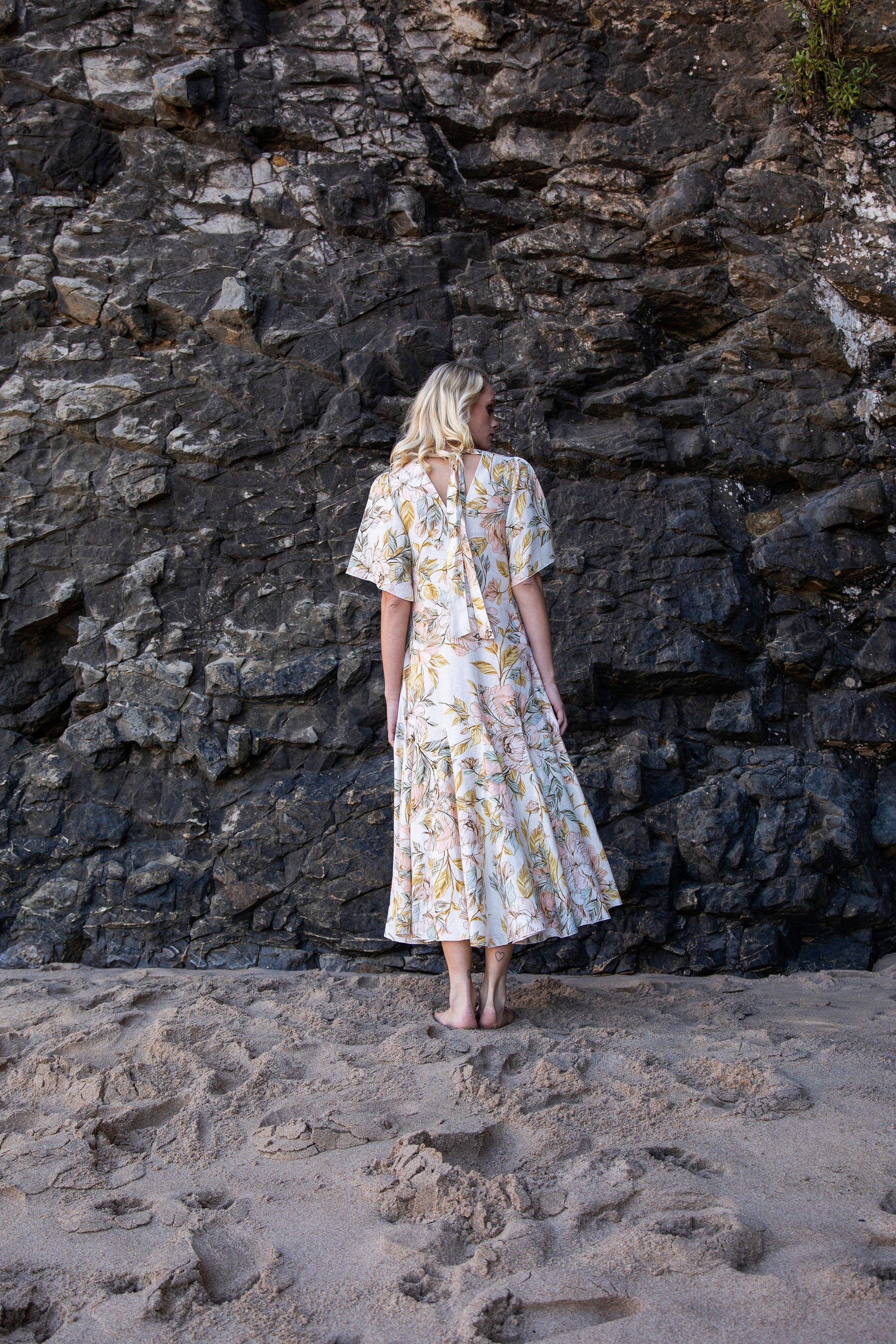 The perfect resort dress. A flattering comfortable silhuette, with a flowing skirt and a bow at the back. You can wear it barefoot for sunset cocktails or with sandals for the city. It come in 100% light linen
