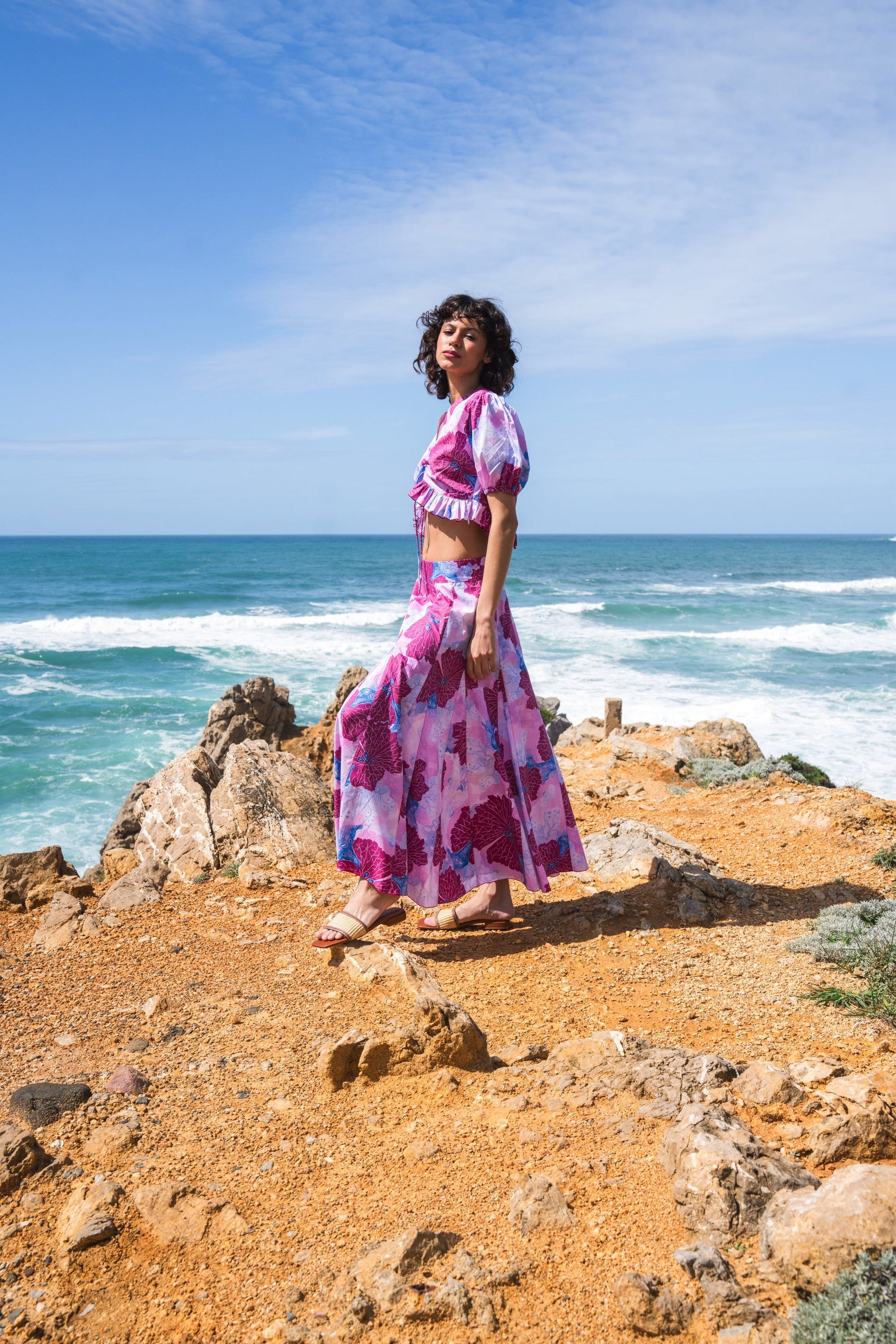 If you like skirts with added volume this is your piece. A godet style skirt that will add playfulness to your Summer wardrobe. Wear yours with the matching Dolce Vita top or with a white tee.