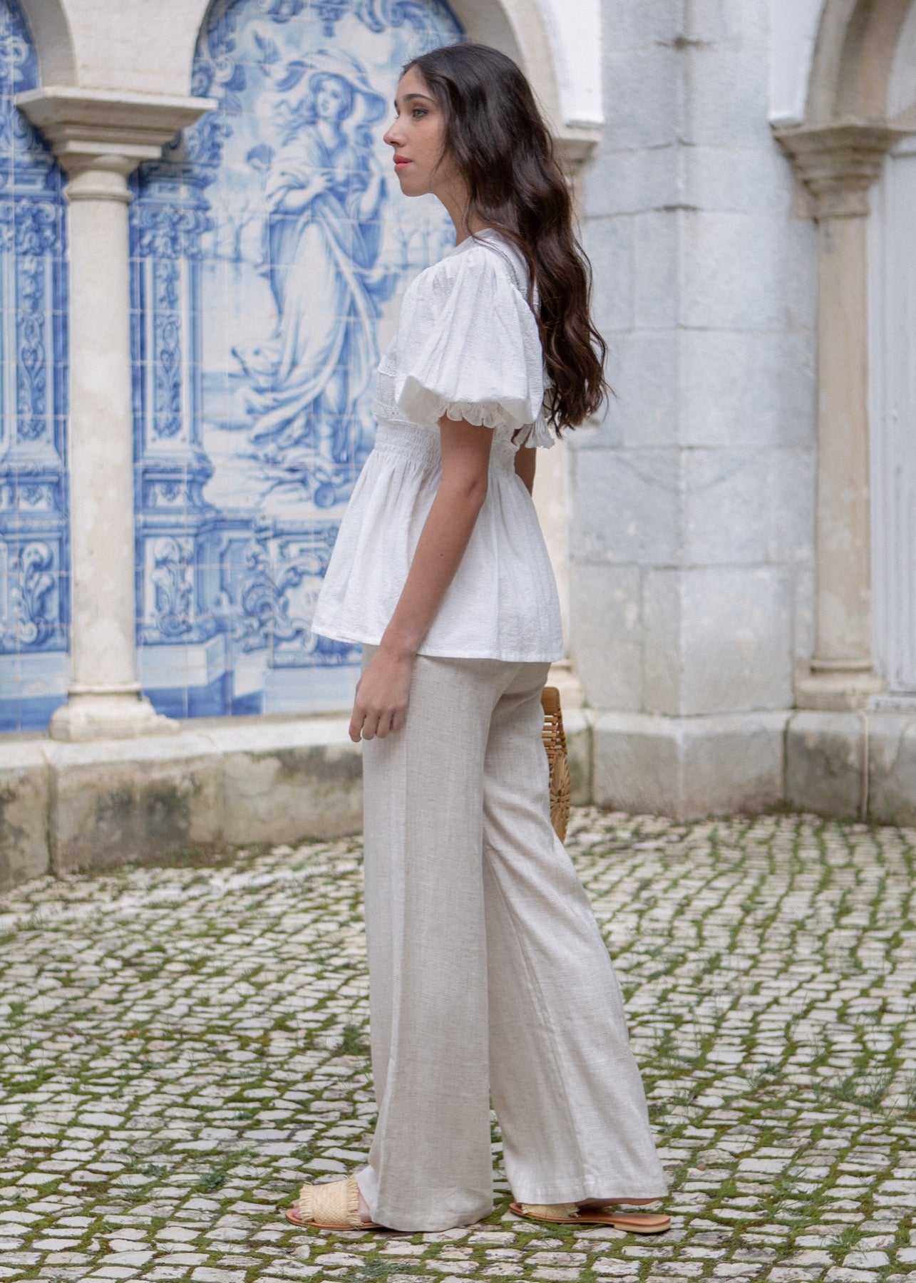 We love blouses! And this Evangeline blouse is perfect. Crafted in cotton seersucker, soft elastic under the bust, dreamy sleeves and a beautifil square open back. Wear yours for the city, the beach, it can be dressed up & down