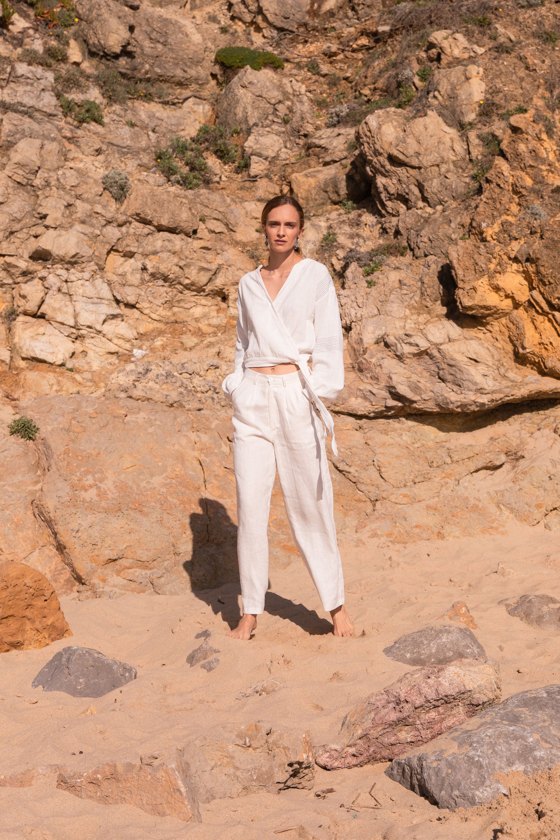 A best seller already in our collection. Made in 100% linen with a casual denim cut. Available in navy, Sand, Khaki, Chocolate. Message us for color card.