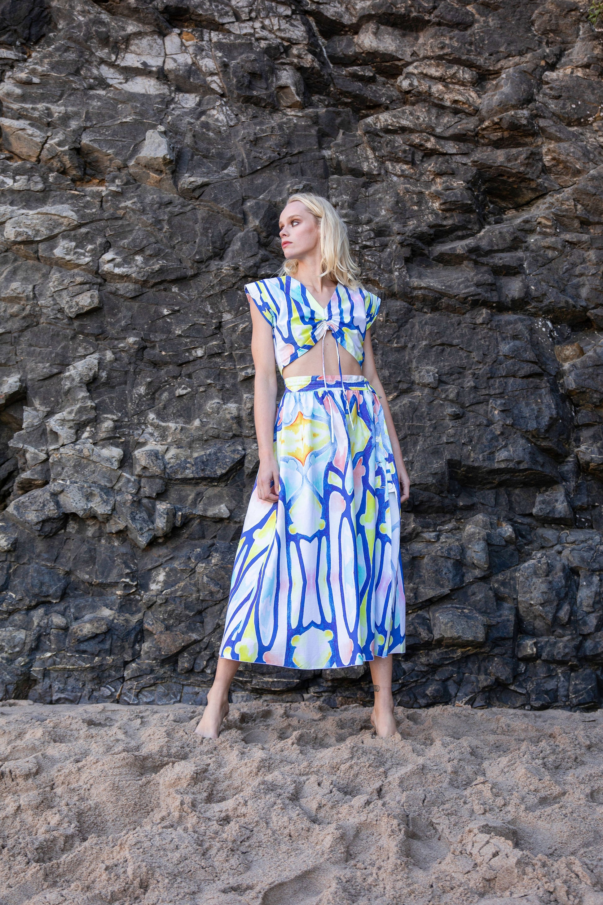 The dress to wear all summer long. Crafted in cotton poplin with a braided soft halter neckline. Features a sexy open back and pockets with detailed straps at the front.