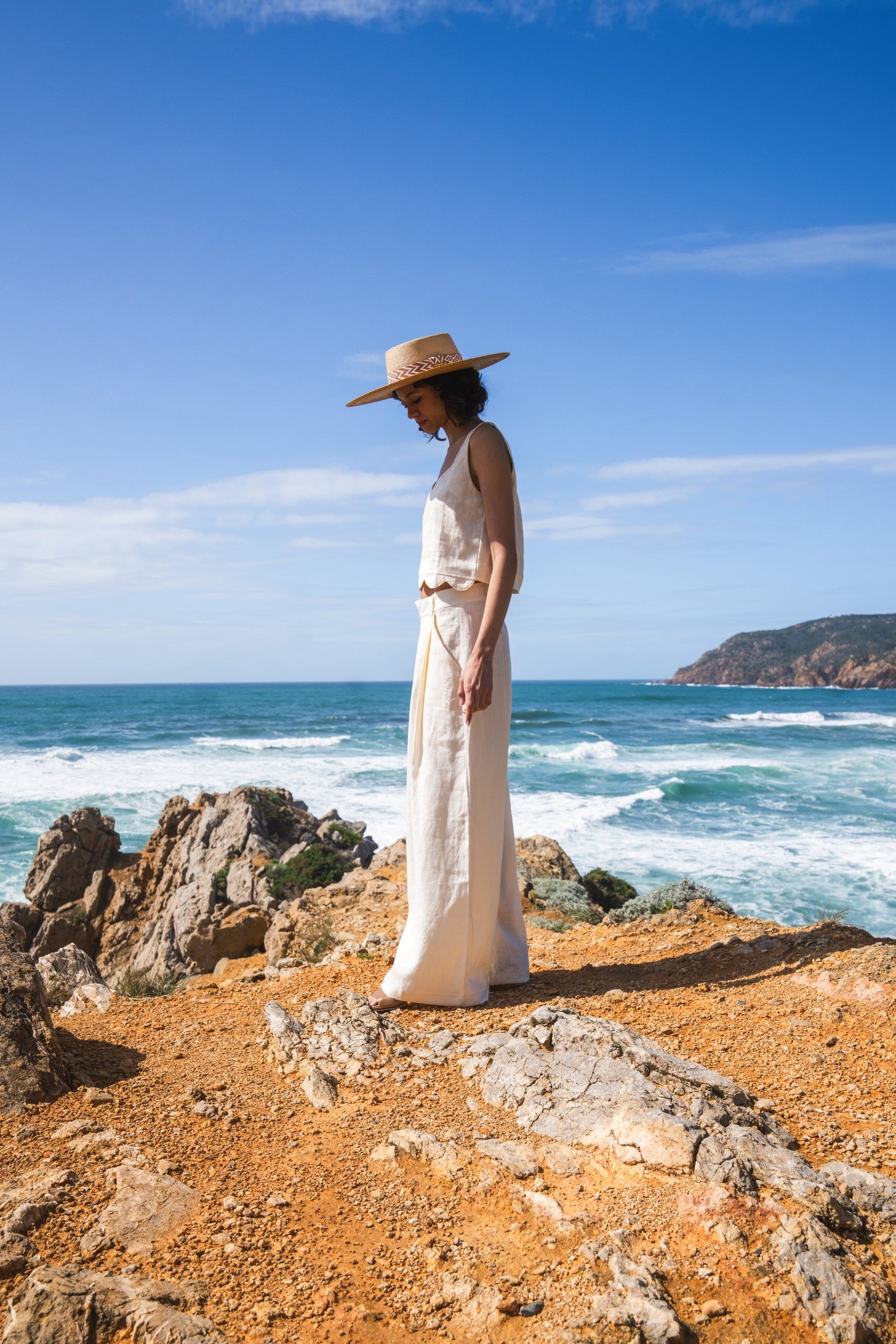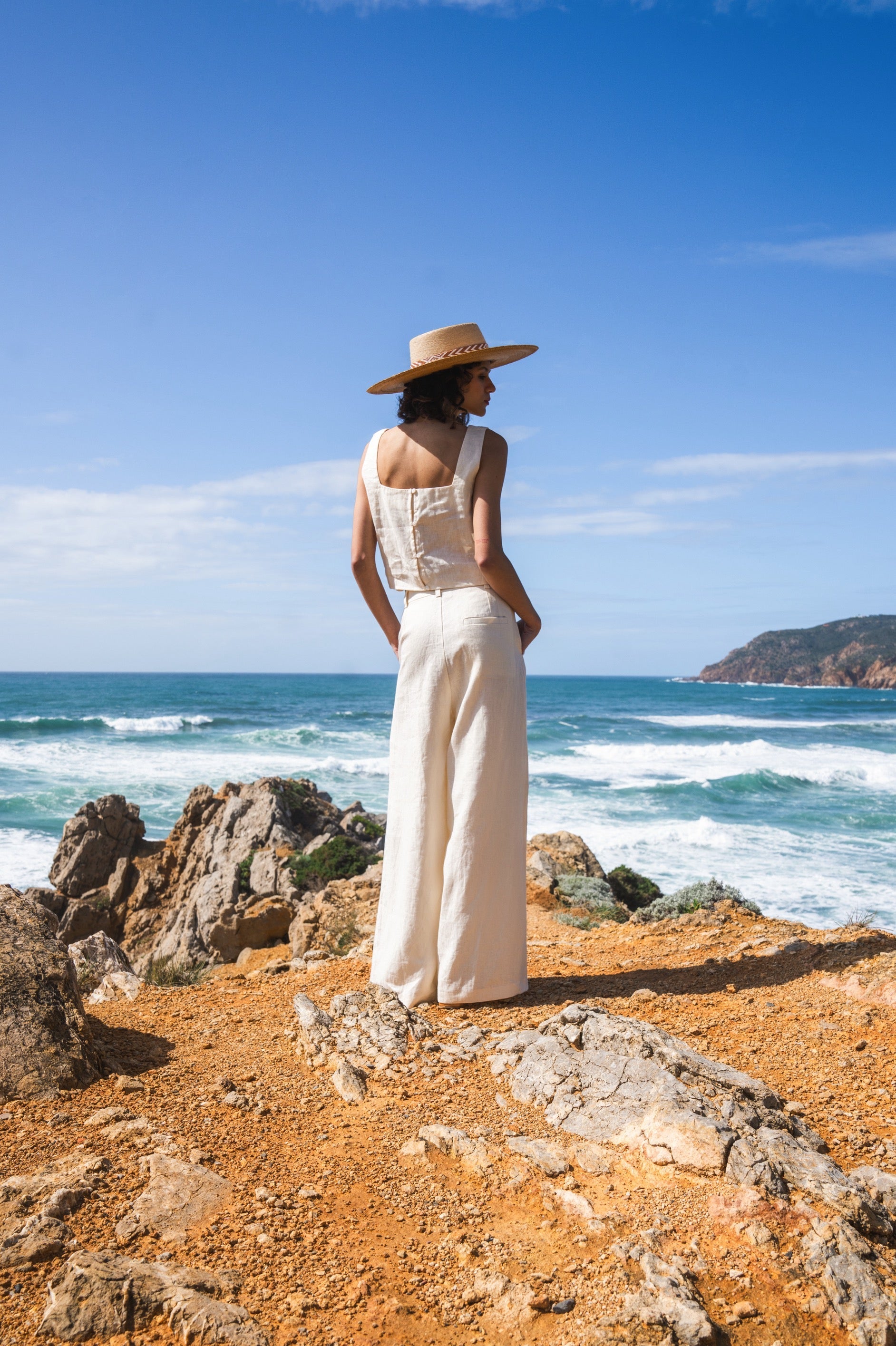 We have been obsessing over pants and our Lindsey pants promise to be the coolest you can find. Wide legs, long length, and cool pockets on the side, you will want to wear this 100% linen pants from morning till night. For a fresh look, wear it monotone with your Rossie top, Graca vest or Rubi top. For a cool casual take wear it with the oversize Amber shirt in our signature stripes and for romantic cosy dinners wear it with our Chantalle top. Lindsey pants comes in white, pink, light blue, butter, sand, camel, navy. All 100% linen.