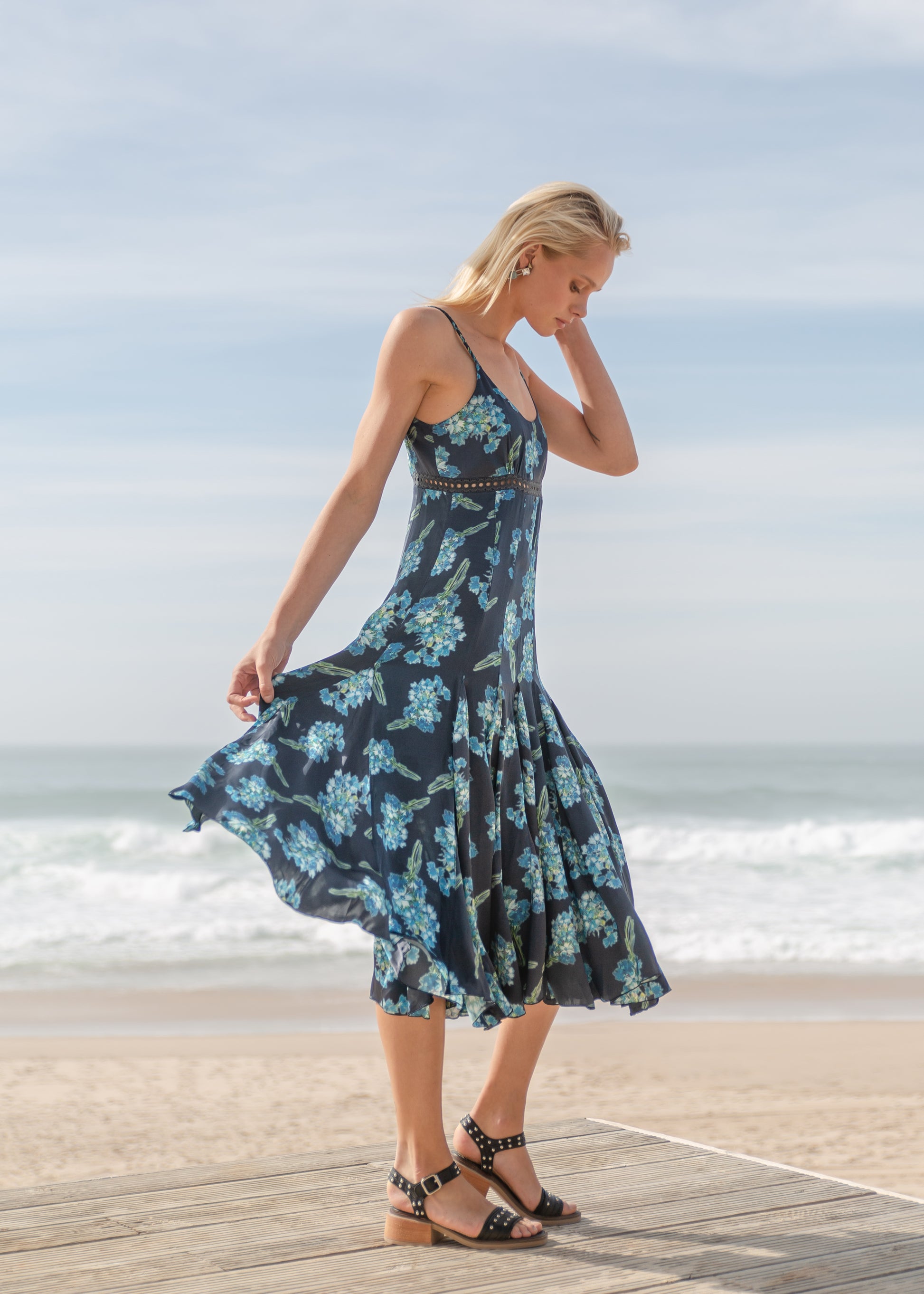 | We love silk and we think this piece is the perfect Summer party dress. The movement in the skirt add to the glamour. |