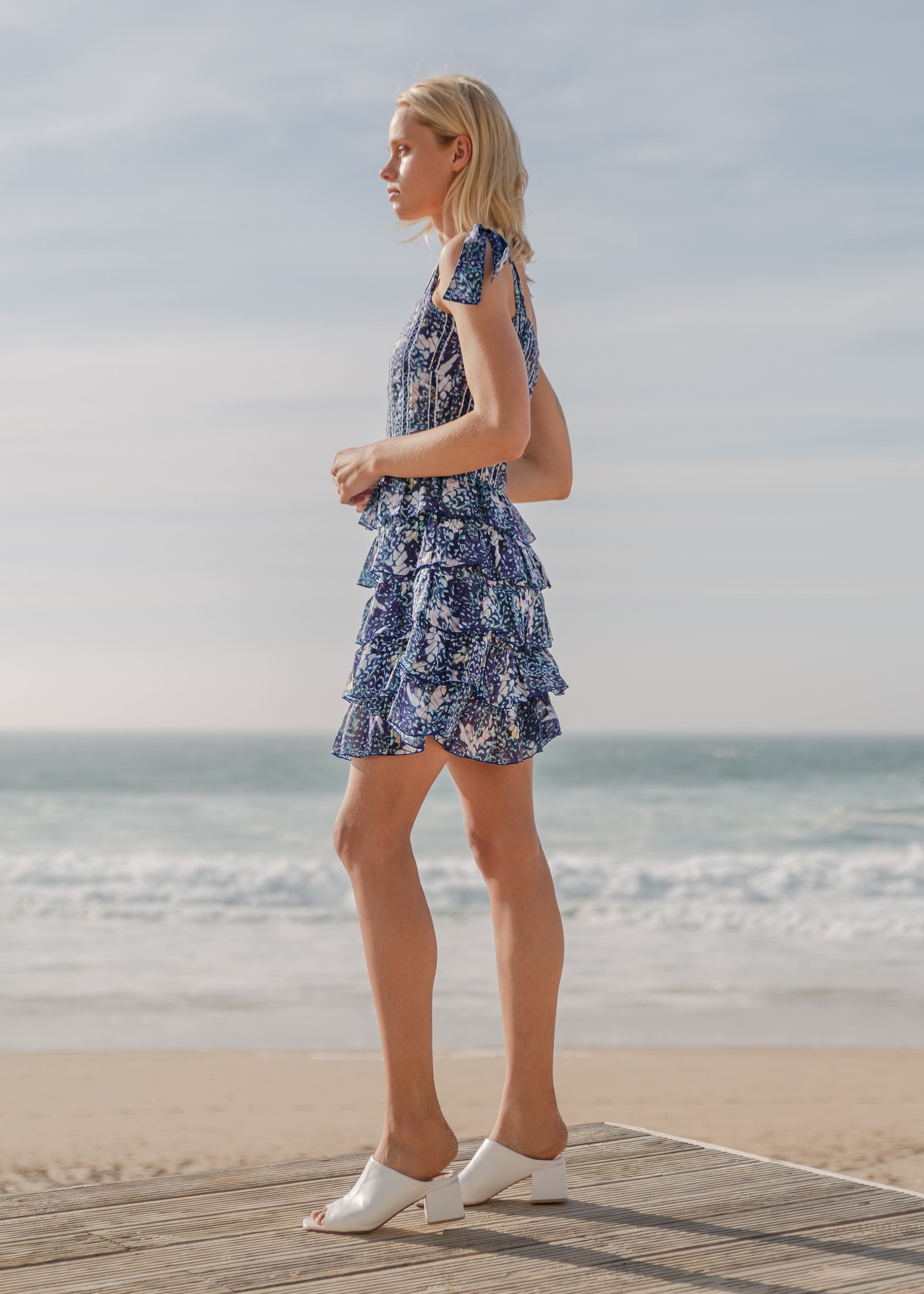| This perfect Summer dress is a total beauty. Featuring one of the exclusive prints of the collection and vintage french trim, is an easy going piece to take on holiday and wear from morning till evening. |