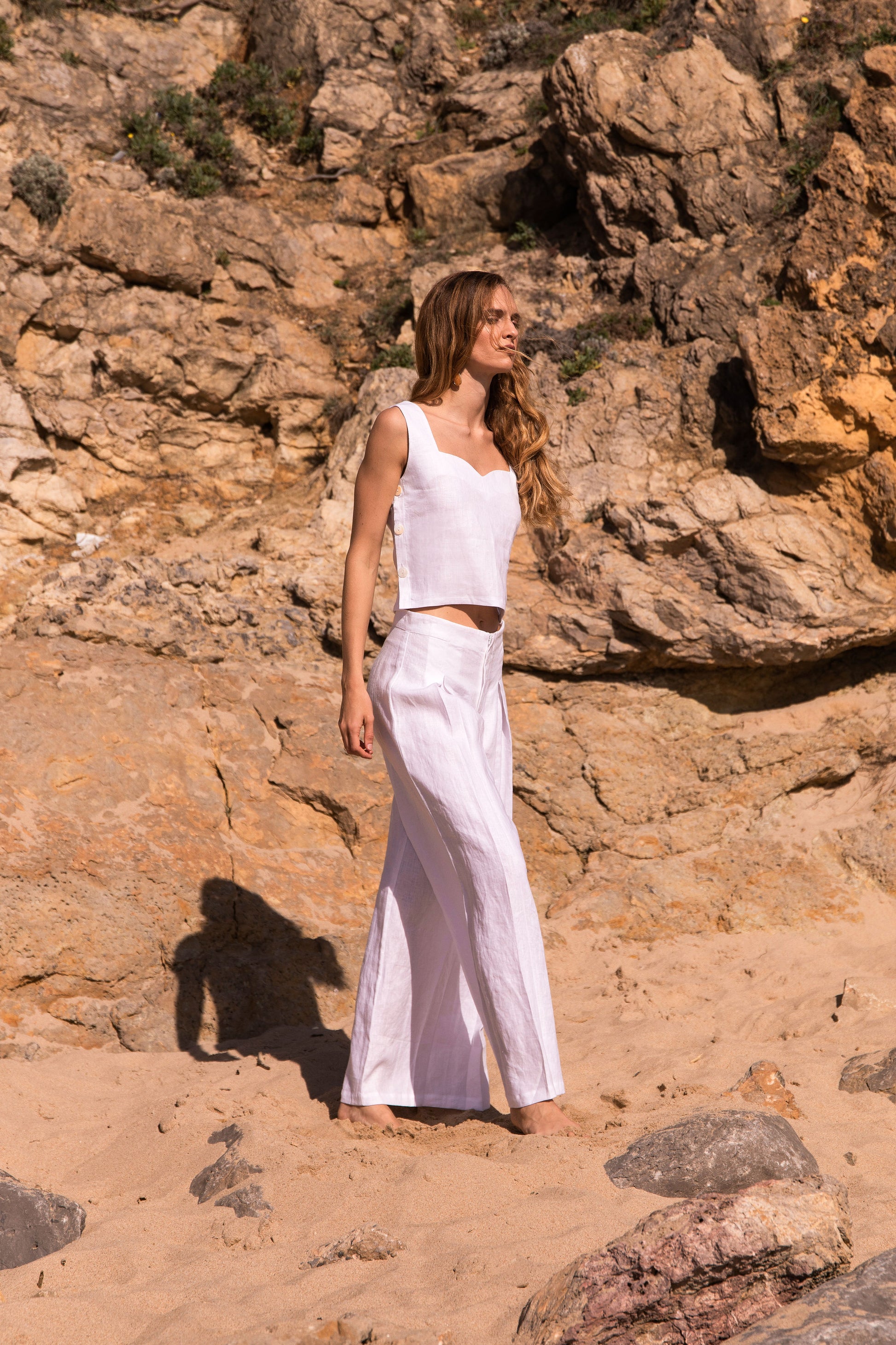 A femenine top crafted crafted in 100 % linen. Perfect to pair with denim or skirt for the office. In Summer wear it with short denim.